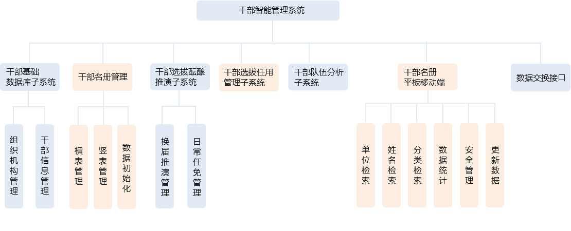 干部智能管理系統(tǒng)以信息收集、交互為基礎(chǔ),以自動化辦公、電子政務(wù)為核心,實現(xiàn)干部基本數(shù)據(jù)按照規(guī)范的程序、流程維護,實現(xiàn)動態(tài)管理干部任職期間、分管工作起止時間及內(nèi)容、動態(tài)描述分管工作的職能職責(zé)、動態(tài)管理班子及成員日??疾炜己诵畔?、動態(tài)管理單位信息等。通過干部管理系統(tǒng)的建設(shè)高效的完成干部日常管理工作。